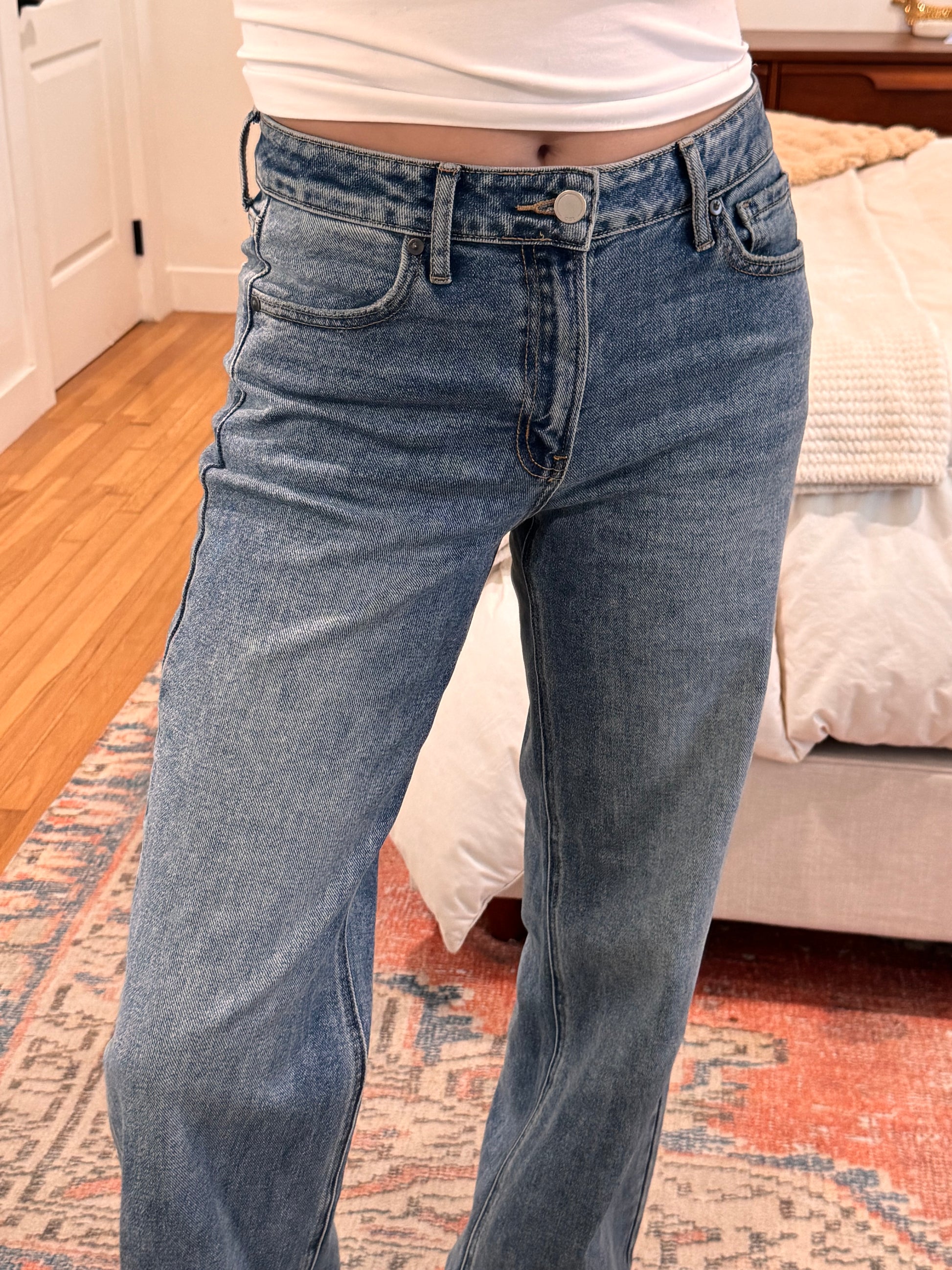 The perfect every day jeans! You will live in these mid rise stretchy wide leg jeans! The perfect every day bottoms! Available in Medium or Light Wash!