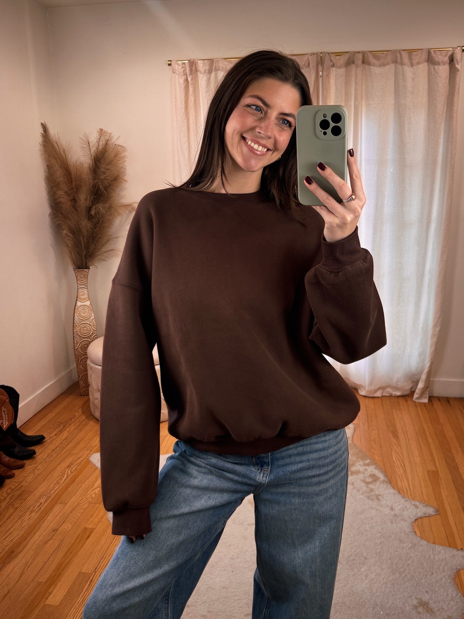 THE BEST FLEECE LINED CREWNECK ft. a slightly oversized fit! PAIR WITH OUR BEST SELLING COMFORT BOTTOMS TO MAKE IT A SET! SUPER SOFT AND COZY!!!