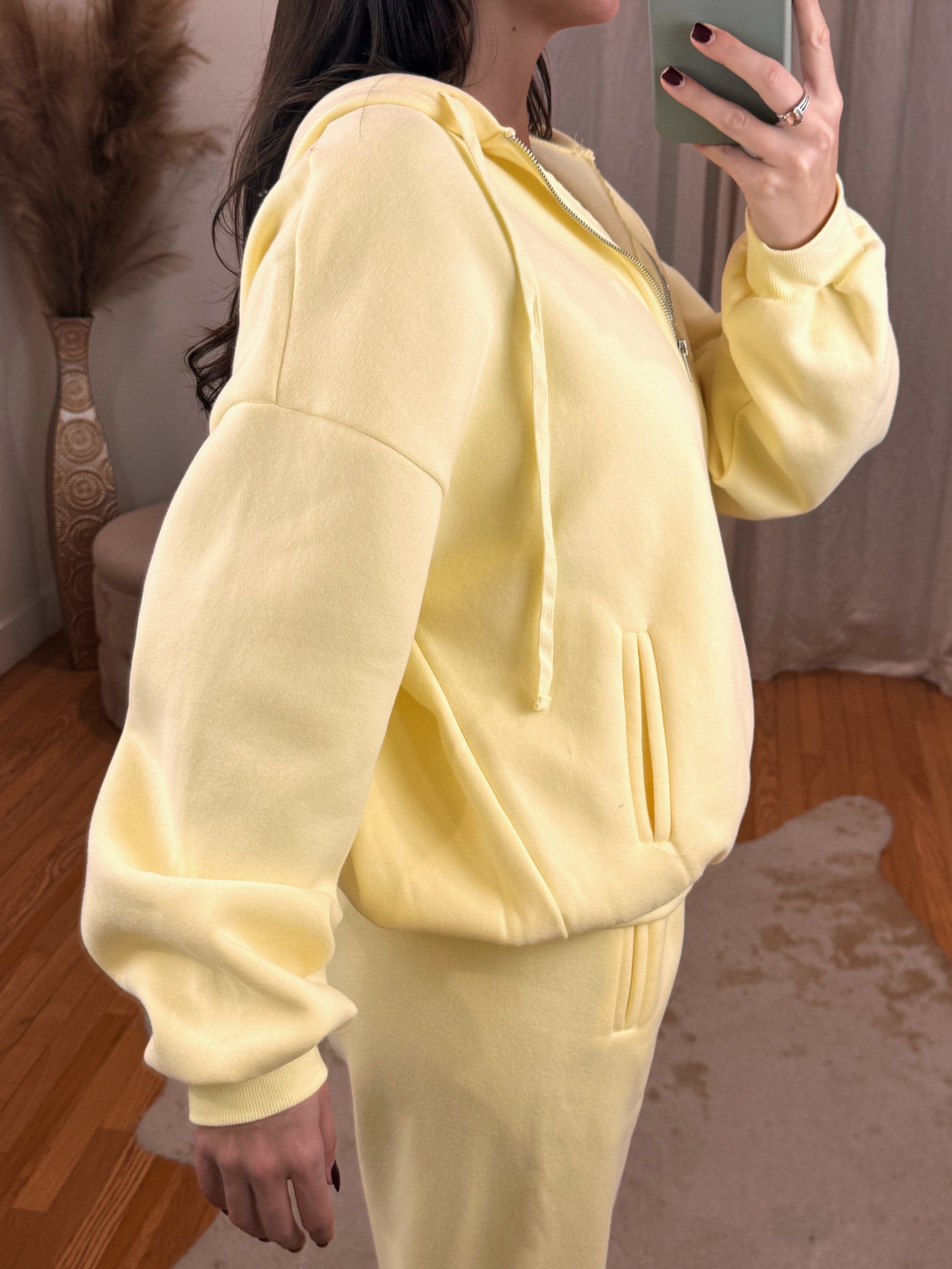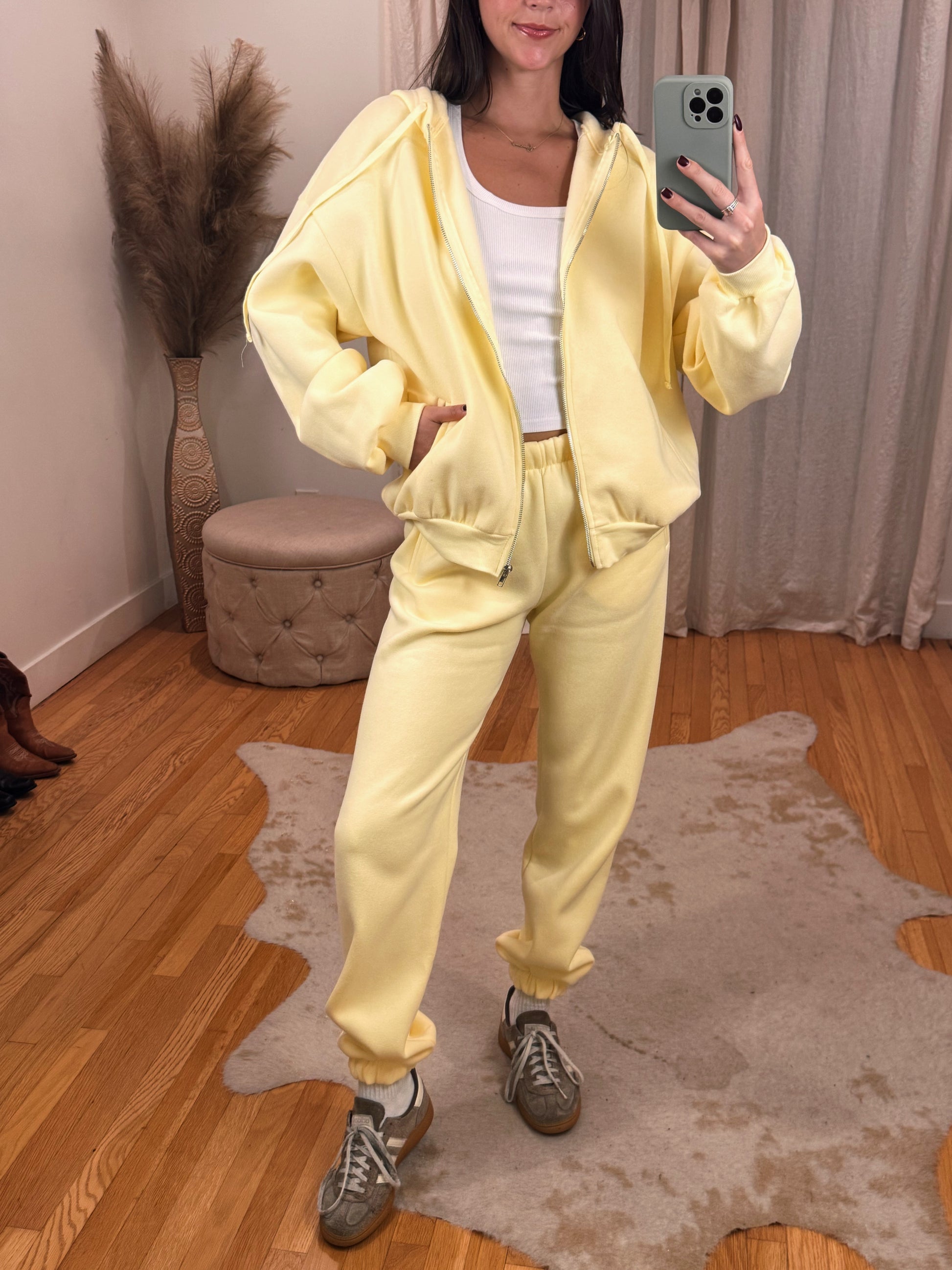 The Perfect New Zip Up to Pair with your Favorite Comfort Collection Bottoms! Full Length Slightly Oversize Zip Up ft. Fleece Lining, Silver Hardware & Hood. So high quality and cozy!