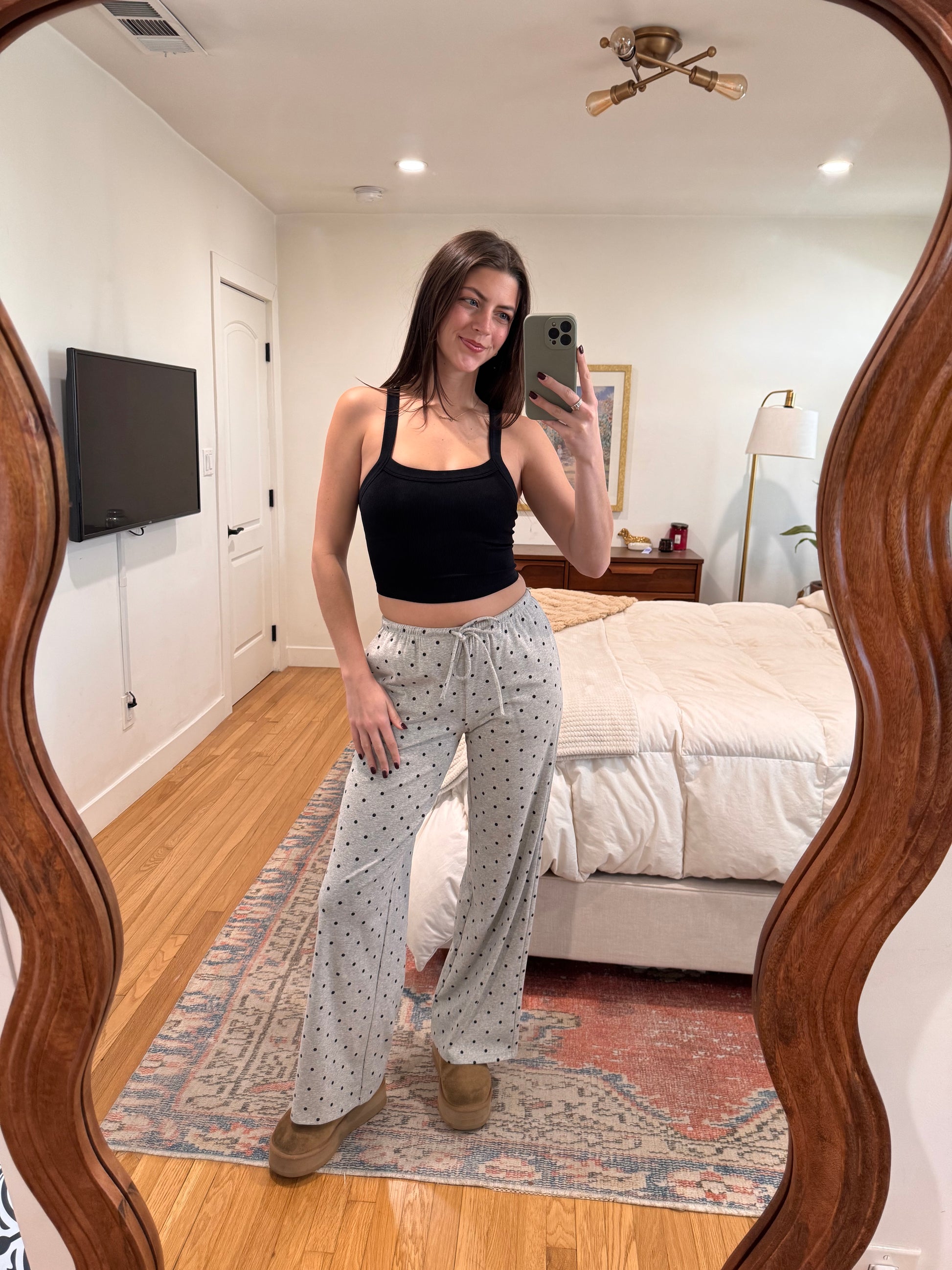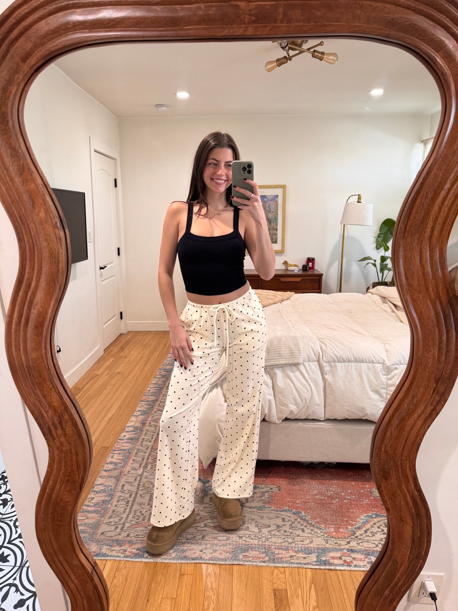 Comfy & Cute! Mid Rise Polka Dot Wide Leg Lounge Pants ft. Functional Drawstring & Pockets!