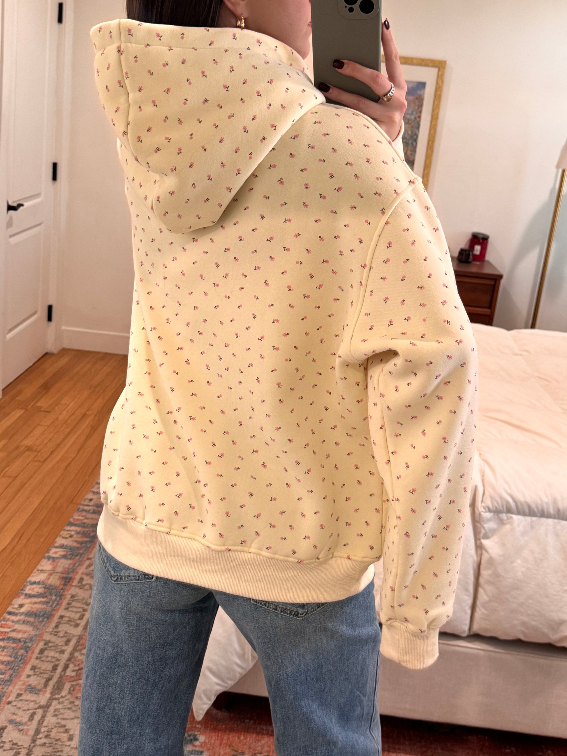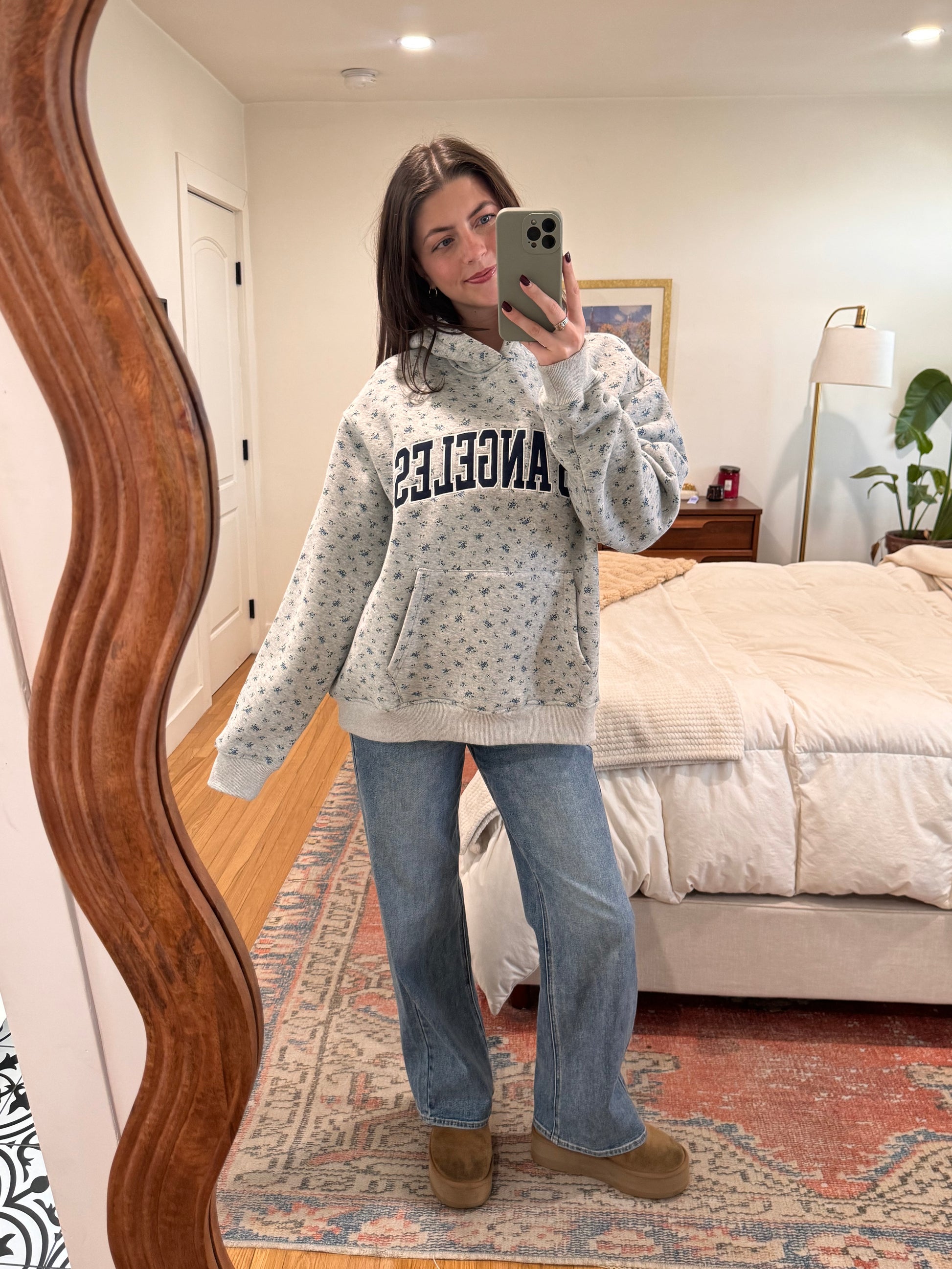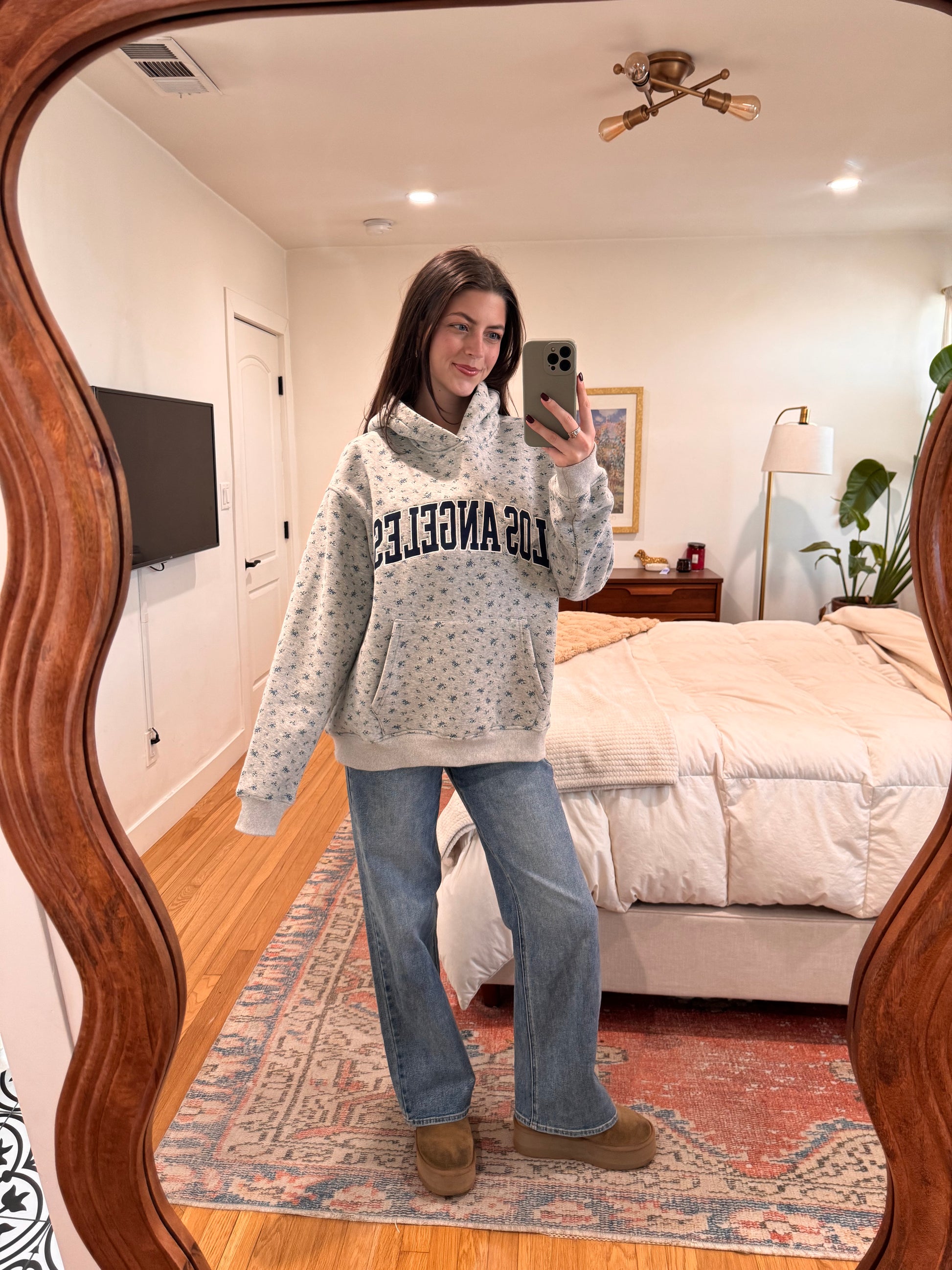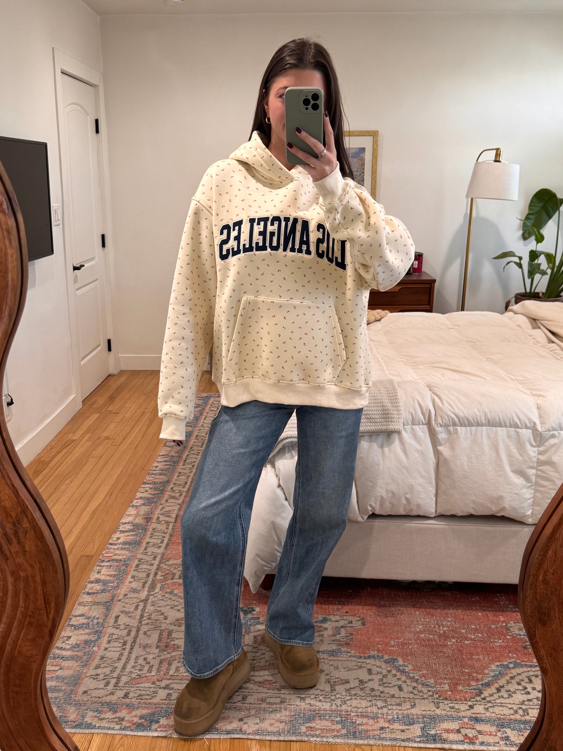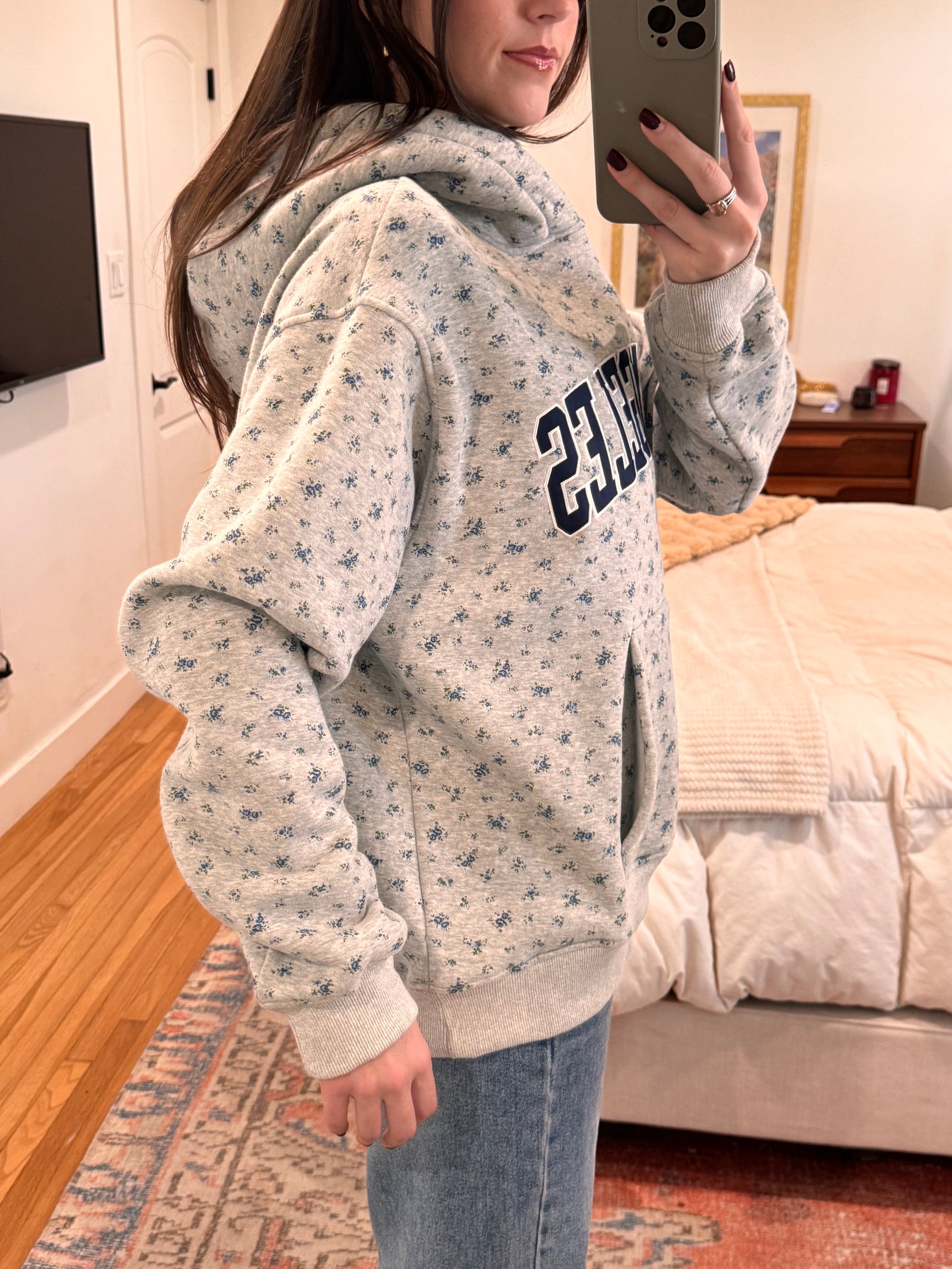 The most adorable floral print oversized hoodie ft. LOS ANGELES text in navy blue font. Rep the Vyvacious HQ! Fleece lined and super nice quality!