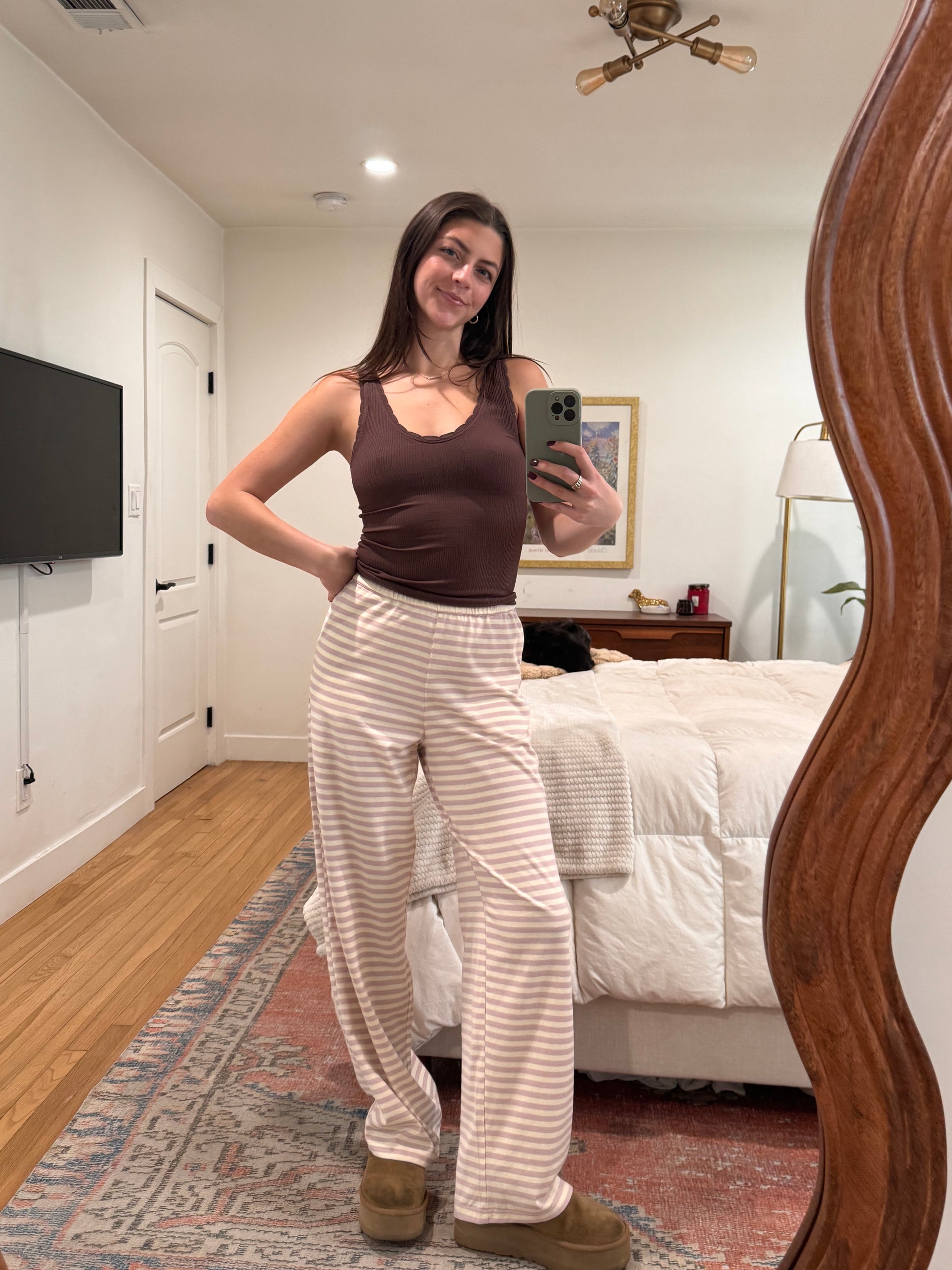 New style alert! Reversible Ribbed Mid Length Tank ft. Scalloped Edges. Can be worn with V or Scoop neck in front ! Not see through.