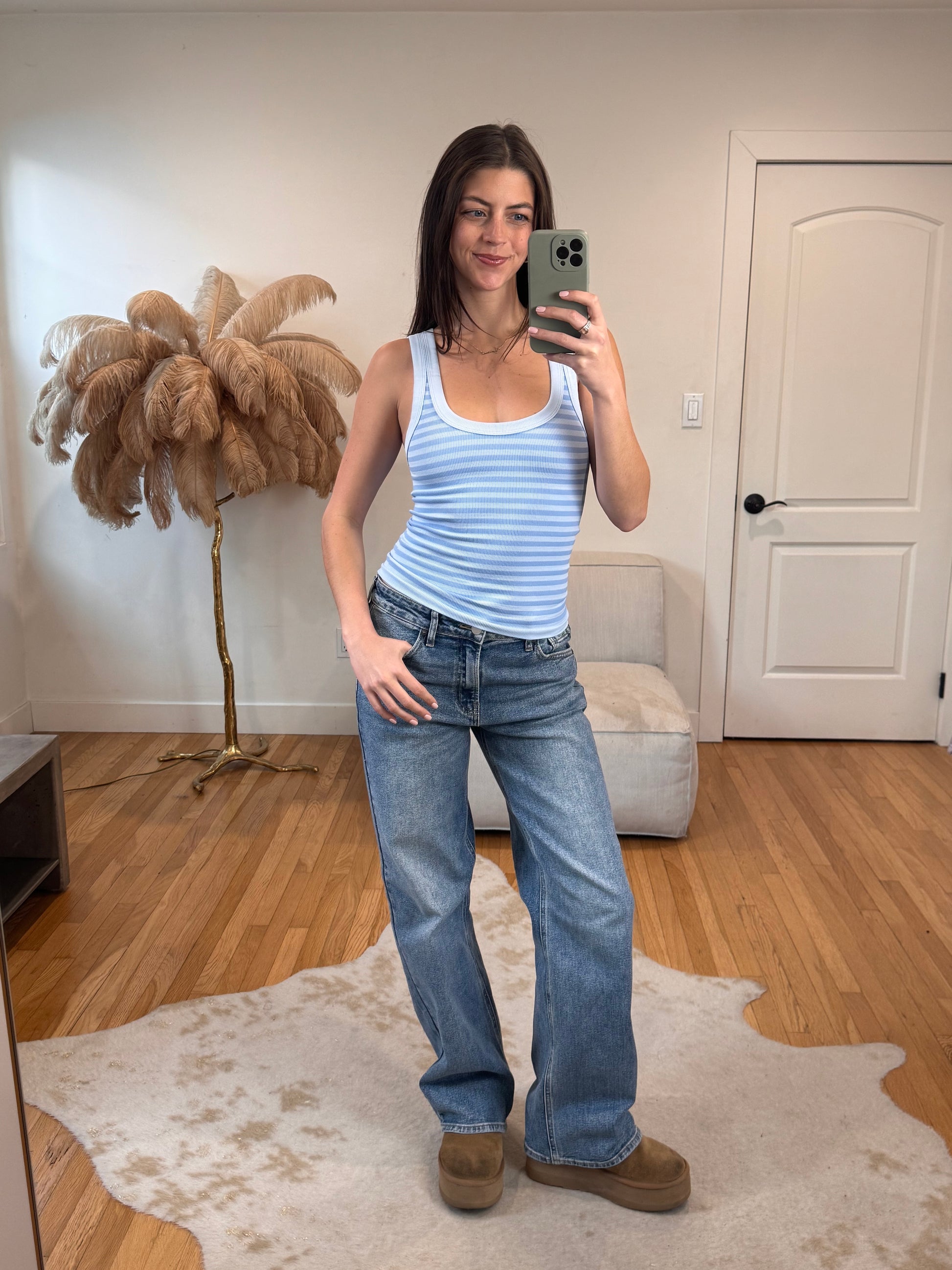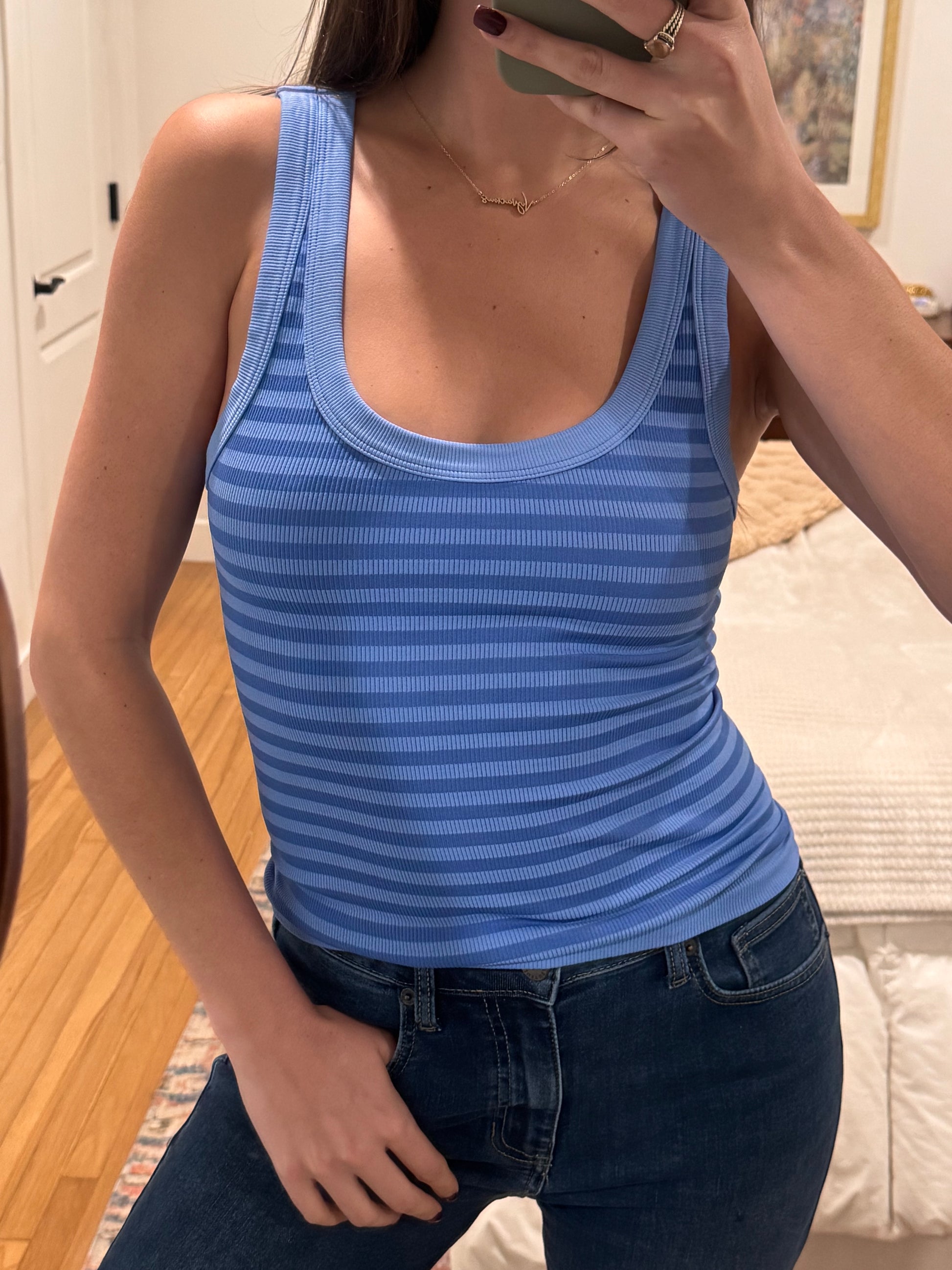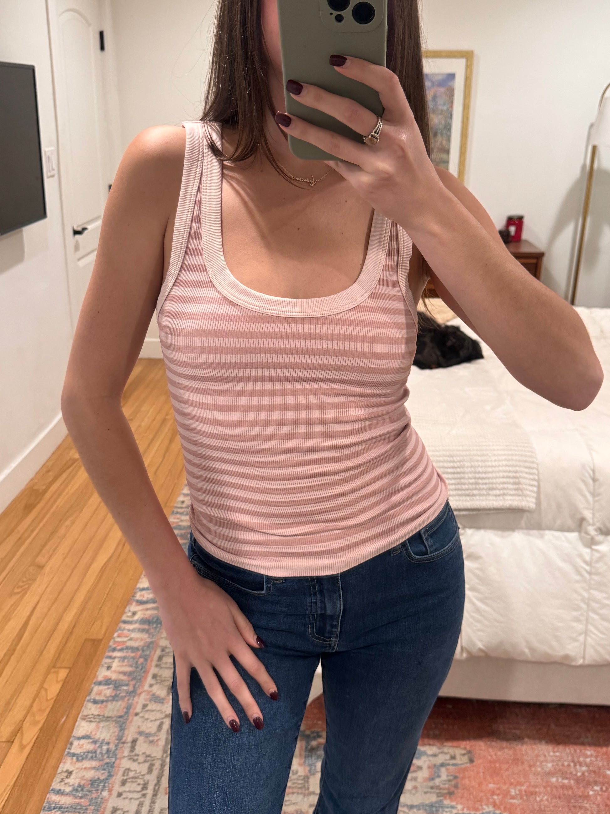 The perfect striped tank! This reversible scoop-neck tank delivers comfort with thick straps plus a striking two-tone stripe pattern in monochrome that looks adorable on it's own or styled as a layering piece!