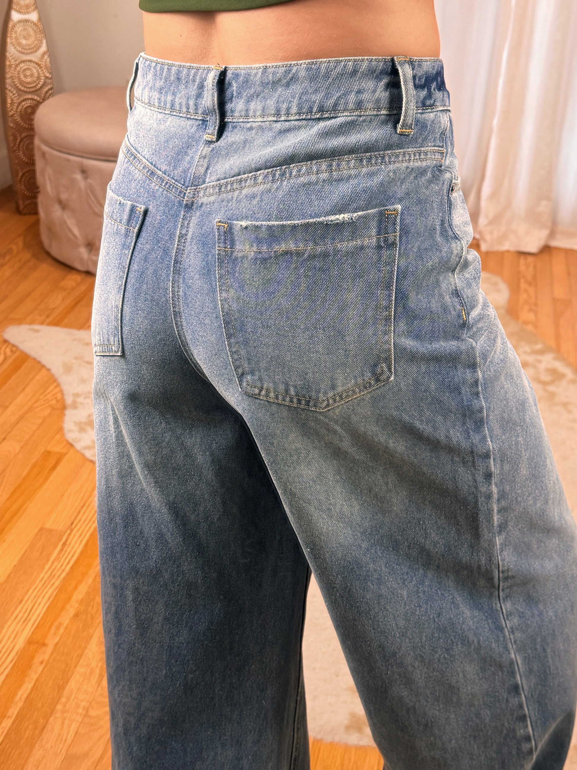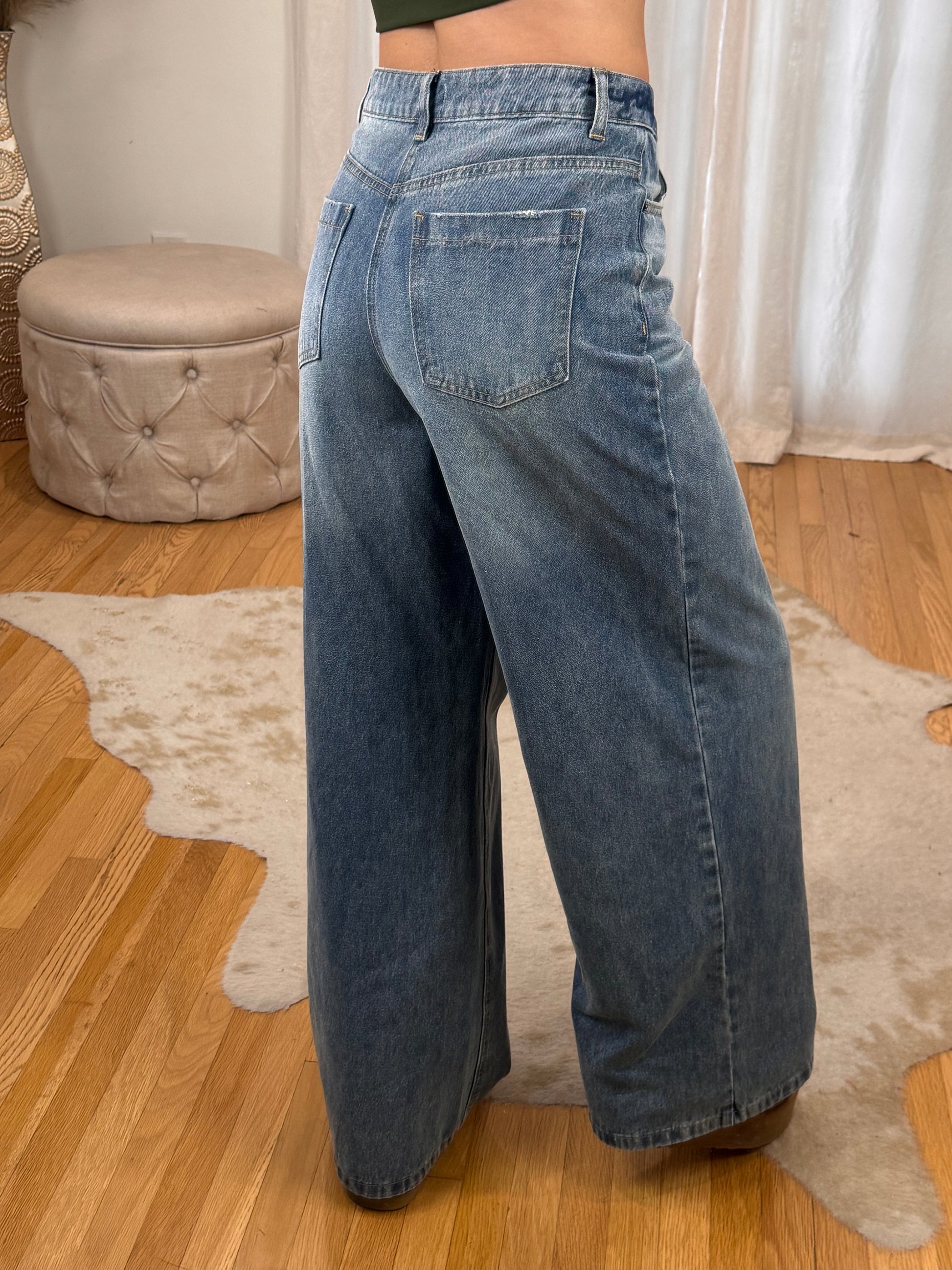 Ultra High Rise Wide Leg Denim Jeans! These do not have stretch. The perfect wash to pair with all your fave Vyvacious tops!