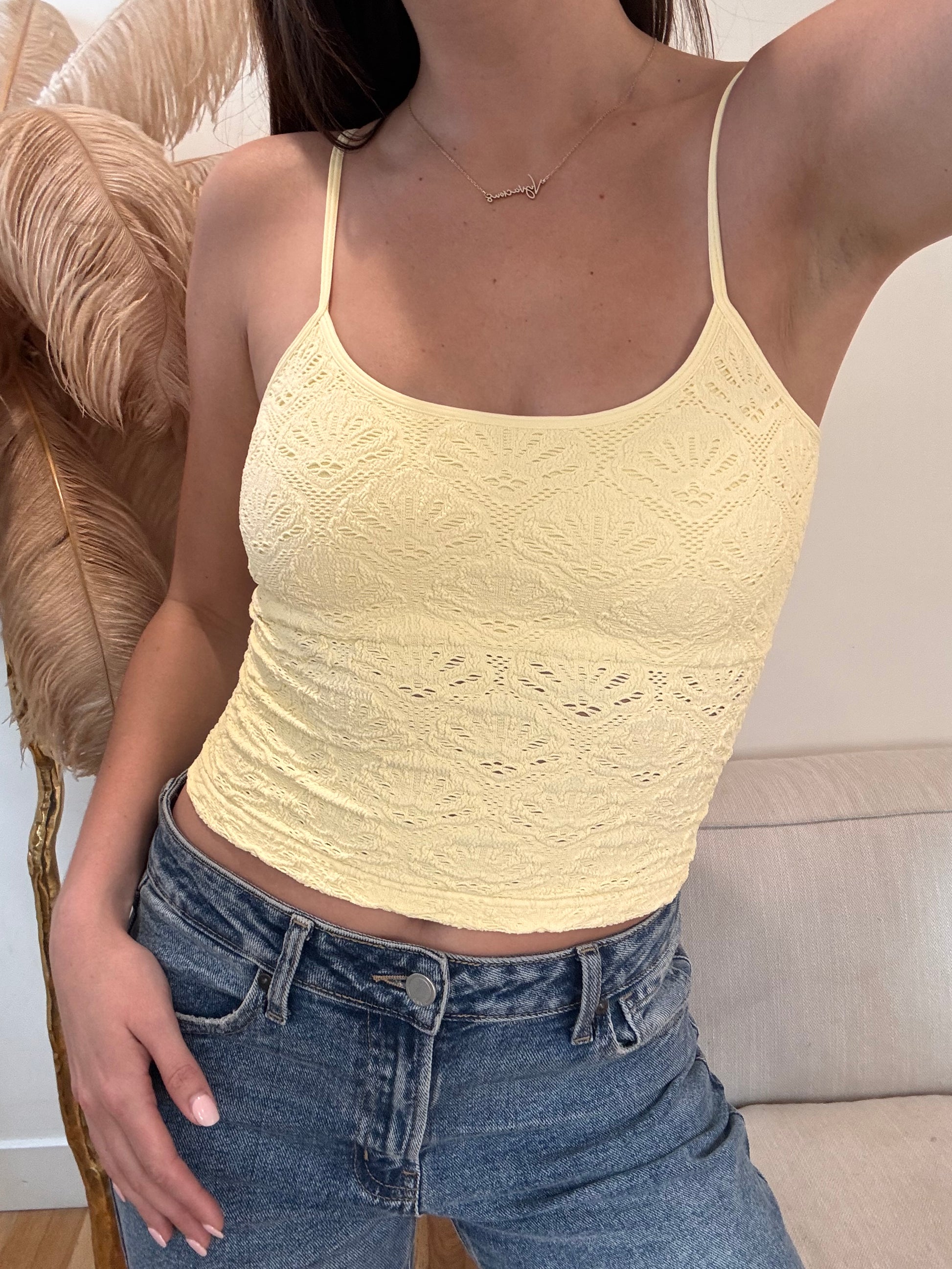 New seamless style! Adorable Cropped Floral Textured Tank Top! Features a double lined chest area and see through mesh stomach area. Not see through!