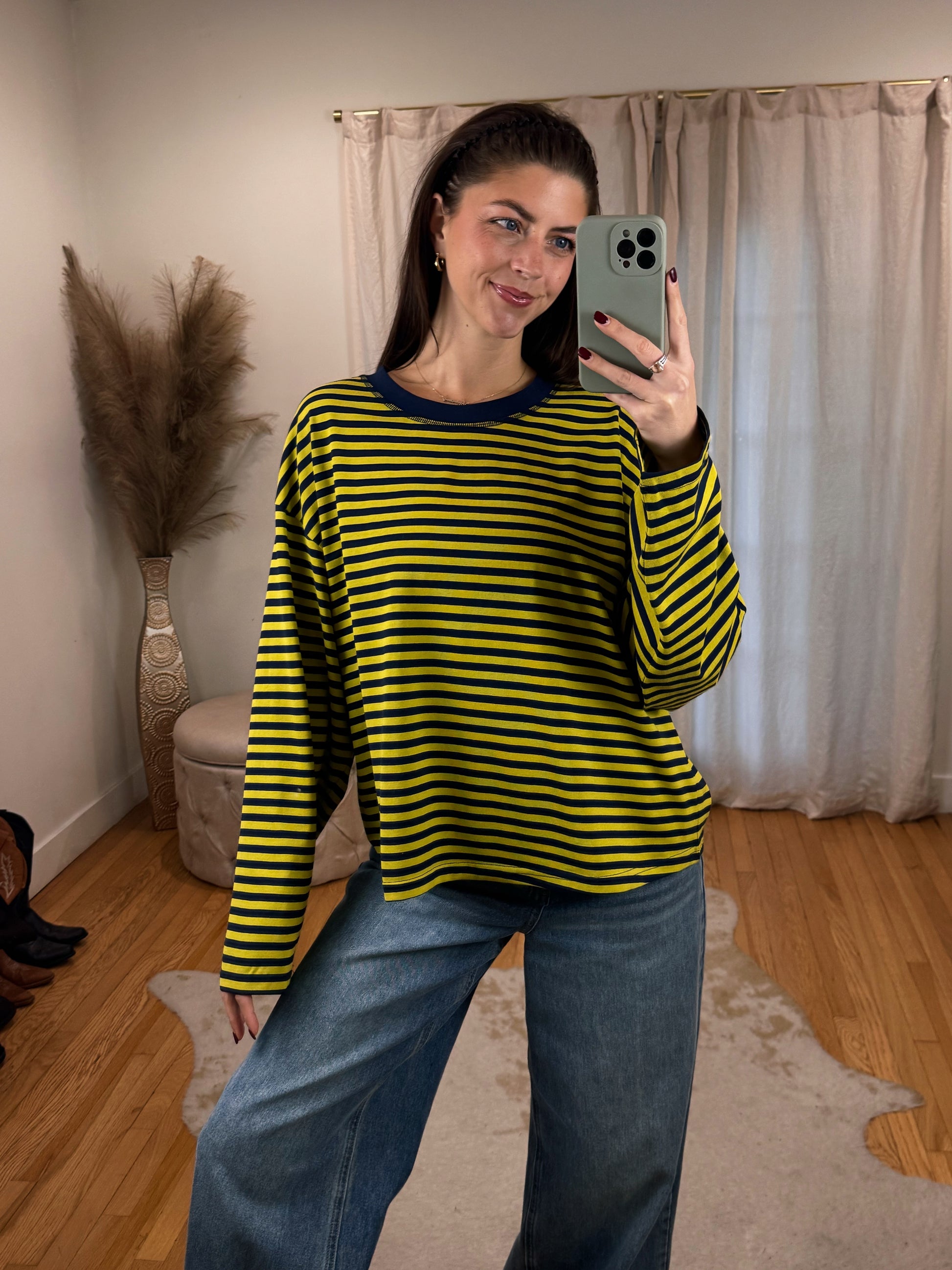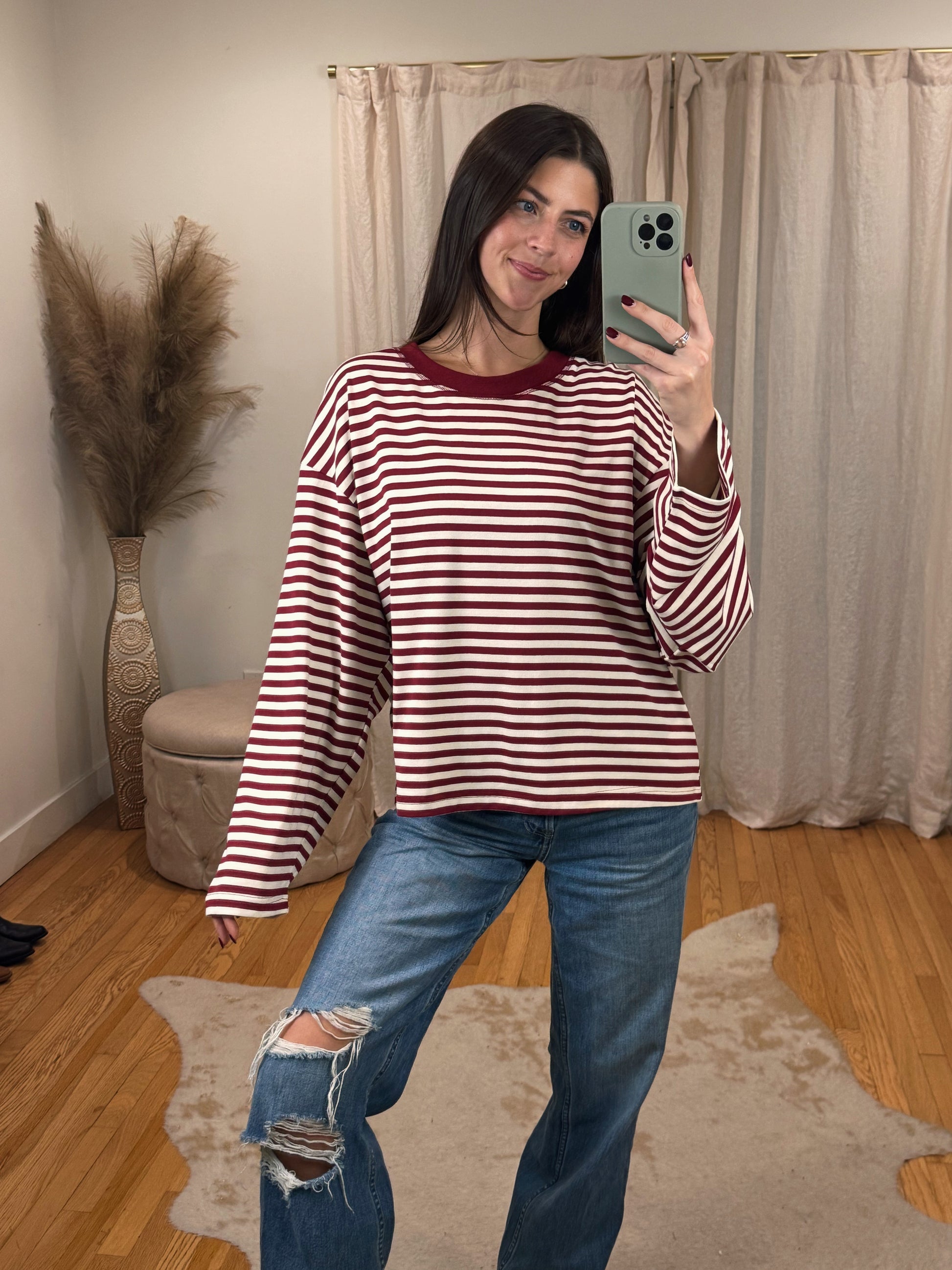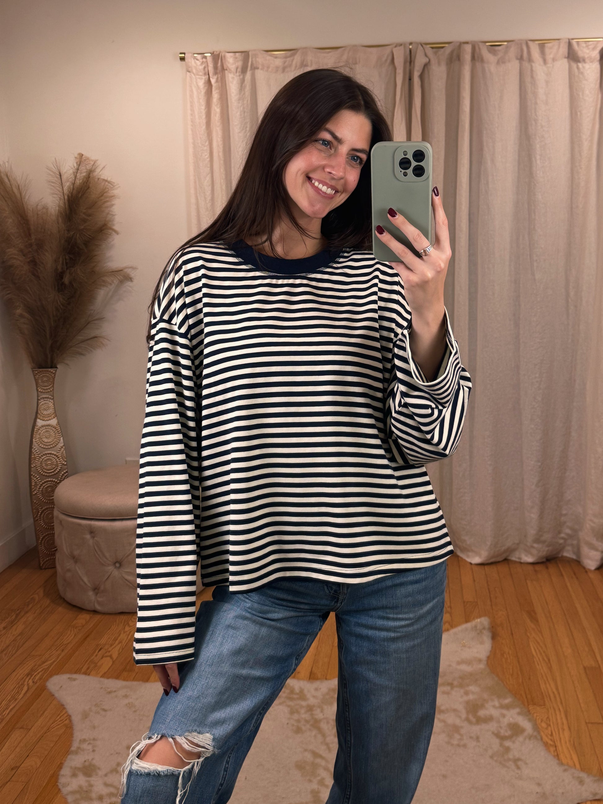 Cool girl Flowy Oversized Striped Long Sleeve ft. Boxy Fit & Crewneck cut.