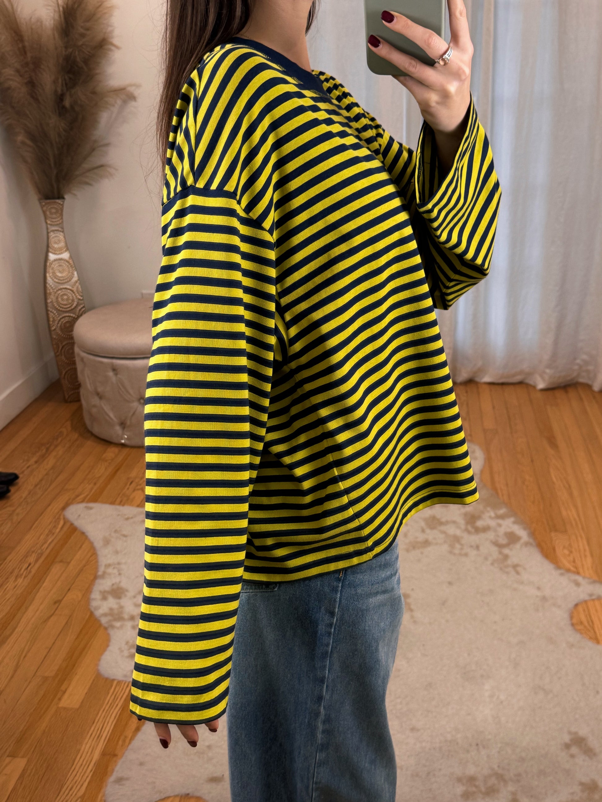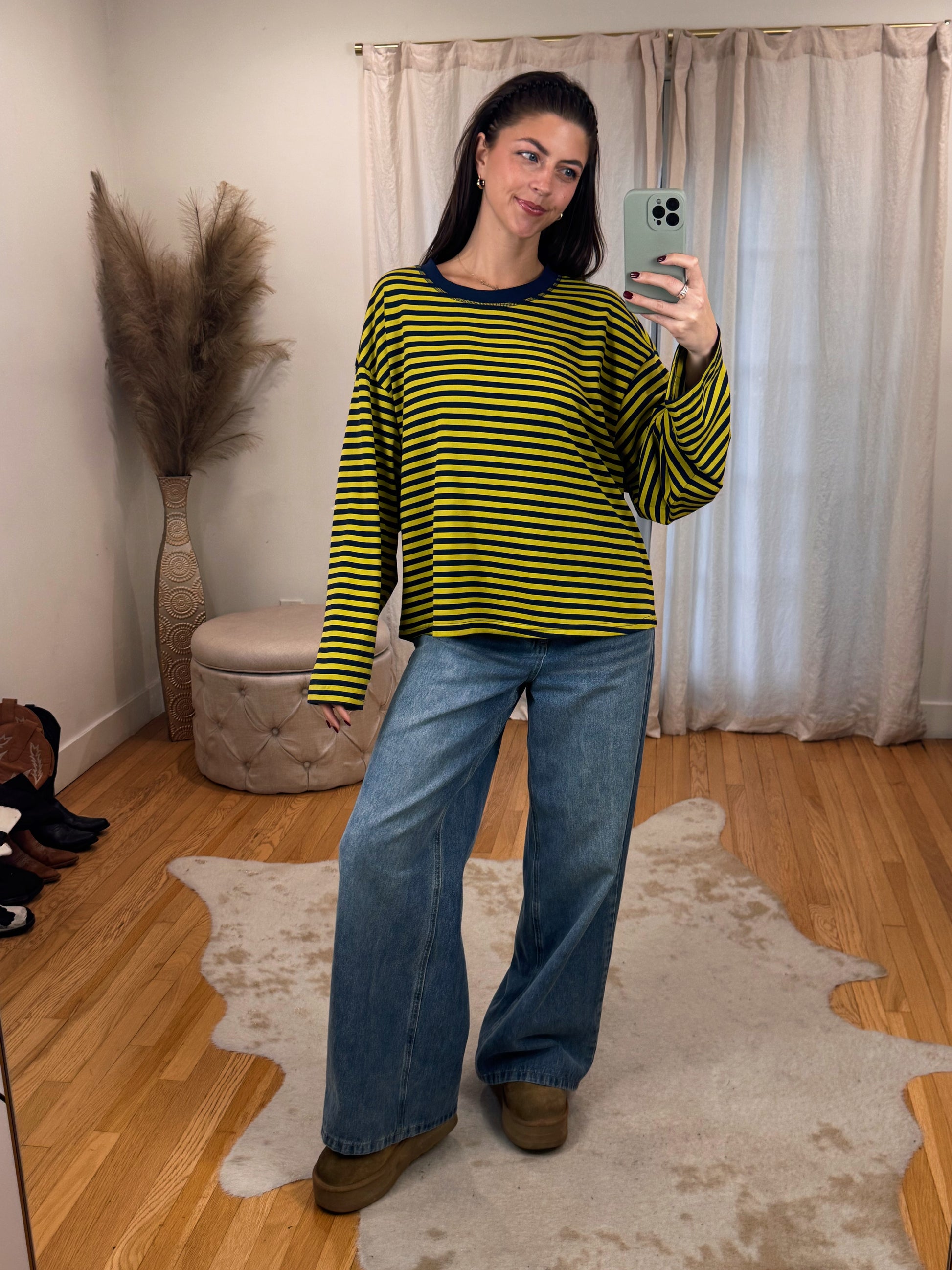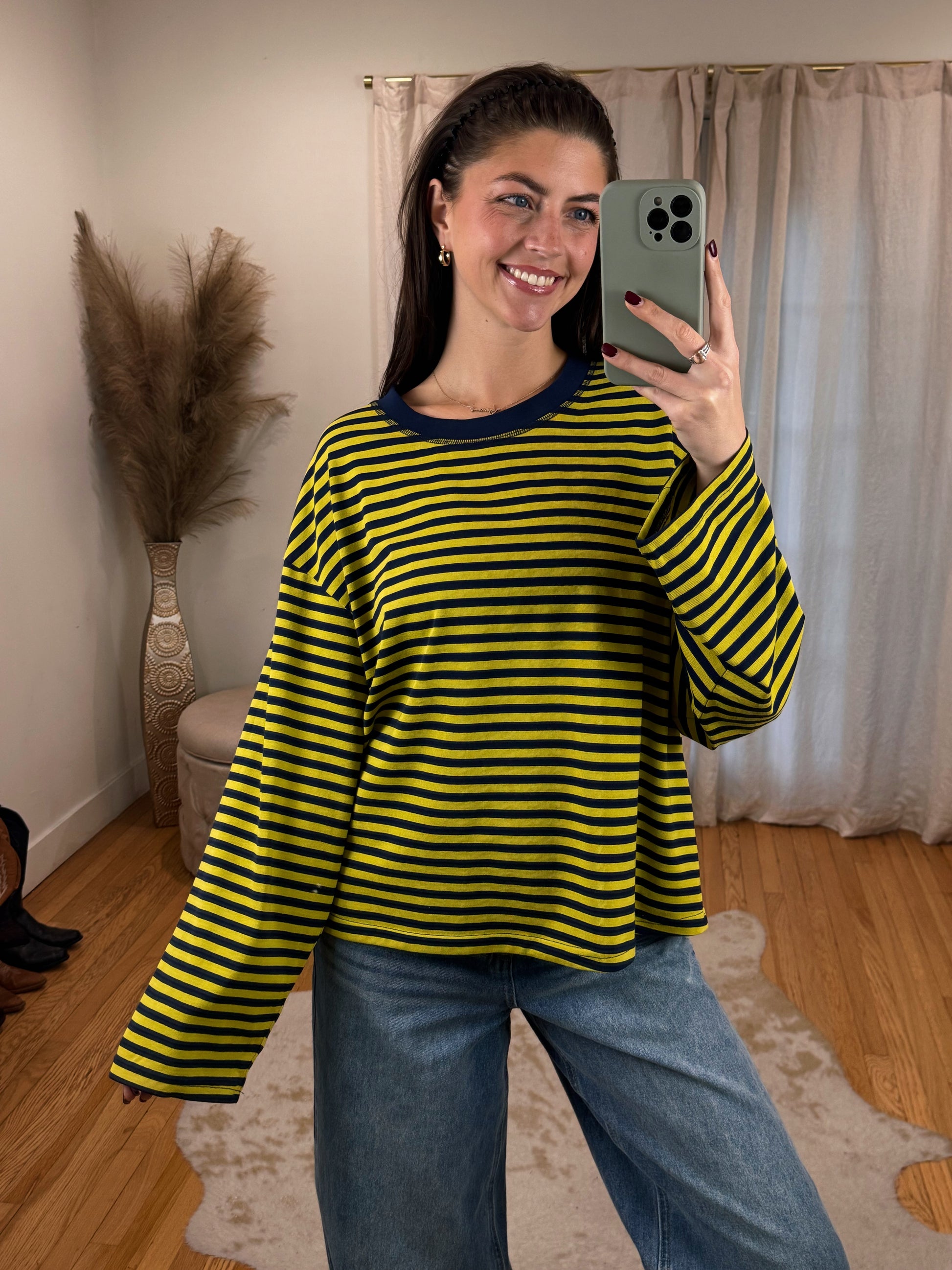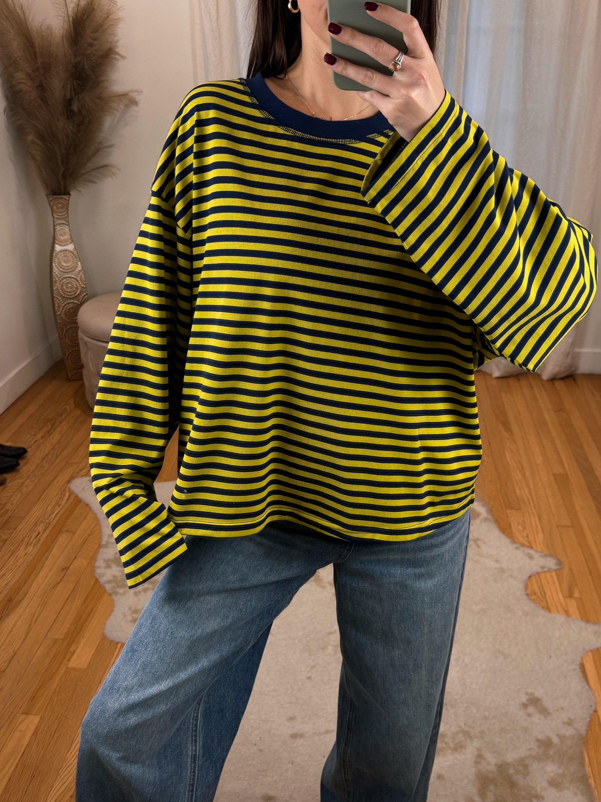 Cool girl Flowy Oversized Striped Long Sleeve ft. Boxy Fit & Crewneck cut.