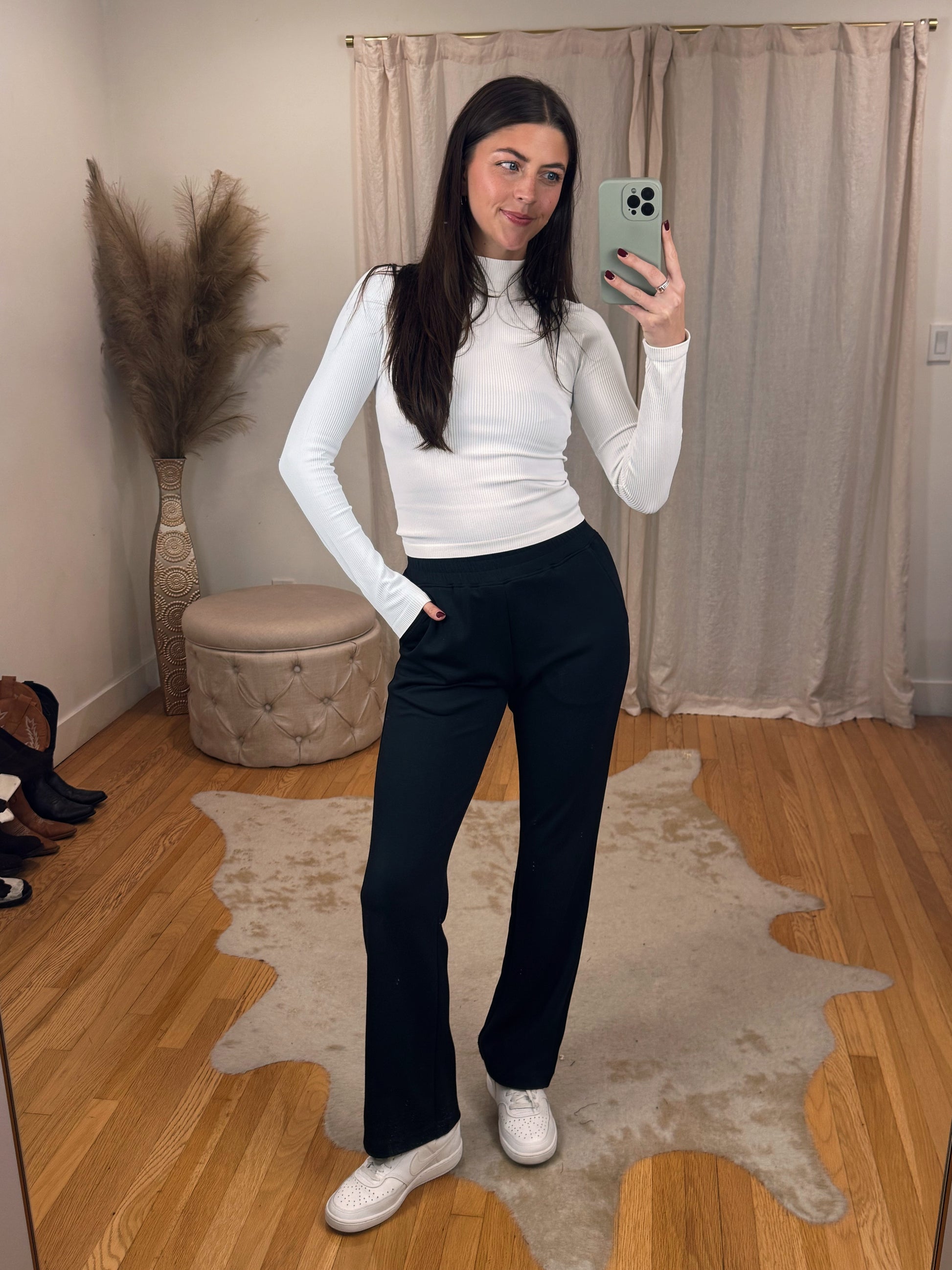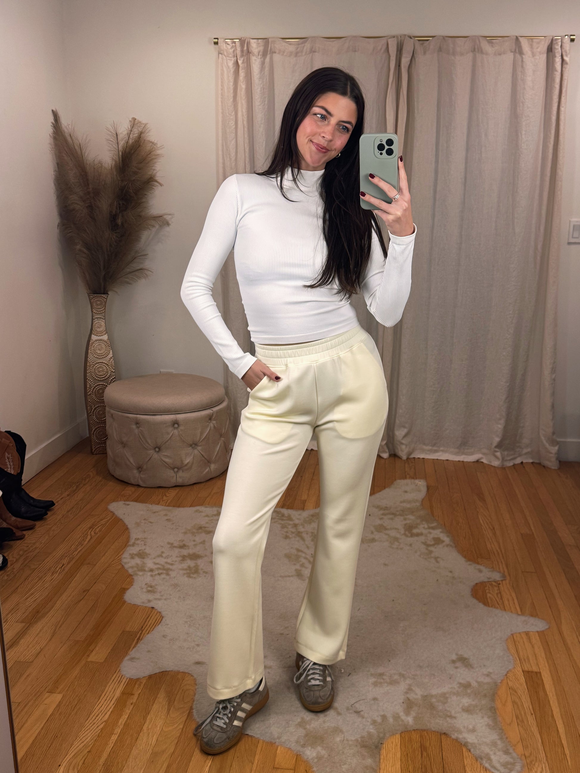Maclaine is 5'7 wearing a size SMALL. This run a little tighter in the waist but overall fit true to size.